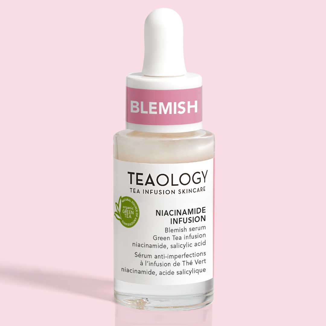 Aqua/water/eau (*), Niacinamide, Corn starch modified, Hexyl laurate, Propanediol, Ammonium acryloyldimethyltaurate/VP copolymer, Camellia sinensis leaf (organic green tea) (*), Hydroxyacetophenone, Caprylyl glycol, Sodium hyaluronate, Salicylic acid, 1,2-Hexanediol, Bakuchiol, Camellia sinensis leaf extract, Sodium gluconate, Diethylhexyl syringylidenemalonate, Maltodextrin, Tocopherol, Lactobacillus ferment, Citric acid, Caprylic/capric triglyceride, Sodium benzoate, Potassium sorbate, Beta-sitosterol, Squalene. (*) tea infusion