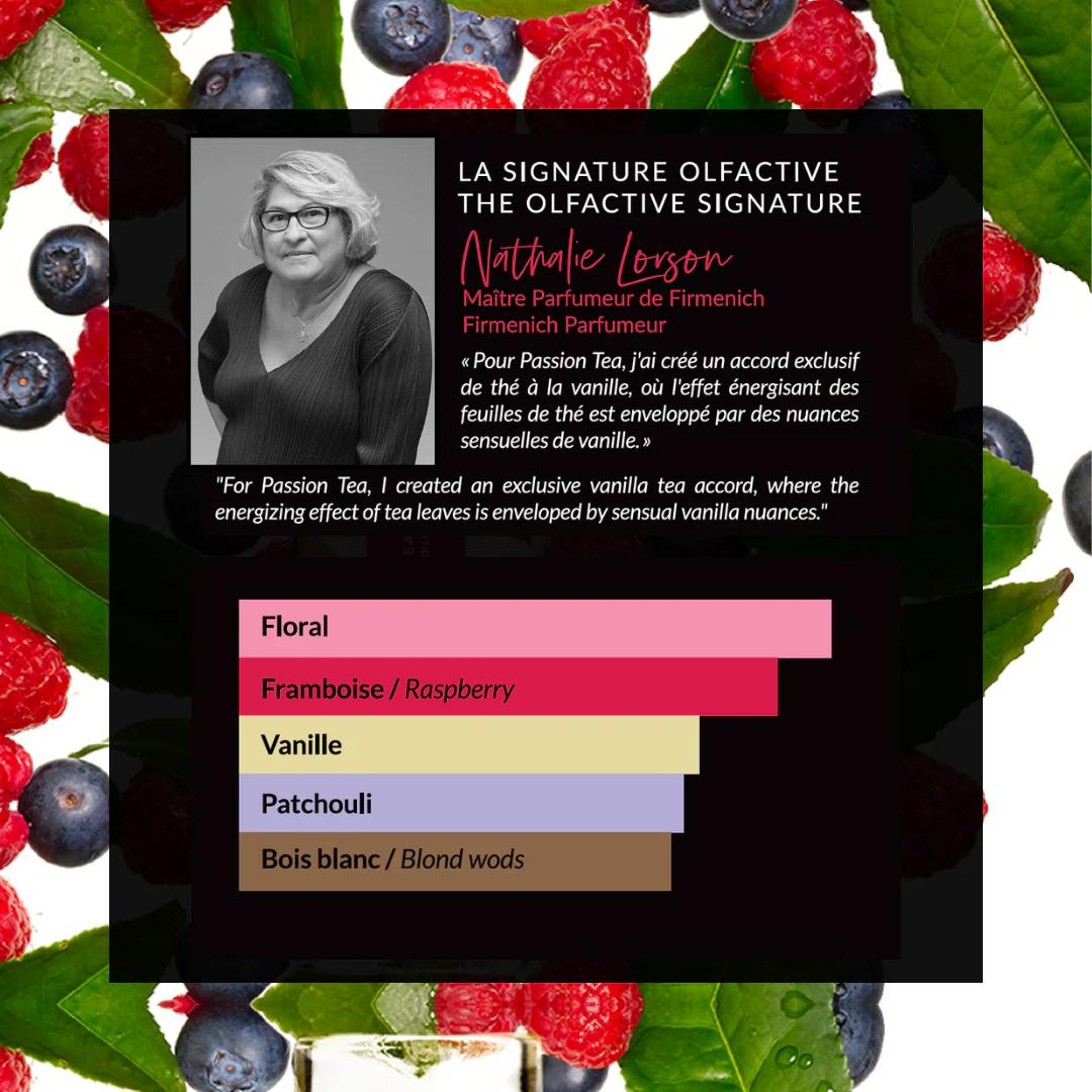 Passion Tea is the result of the olfactory genius of Nathalie Lorson, Firmenich Maître Perfumer.